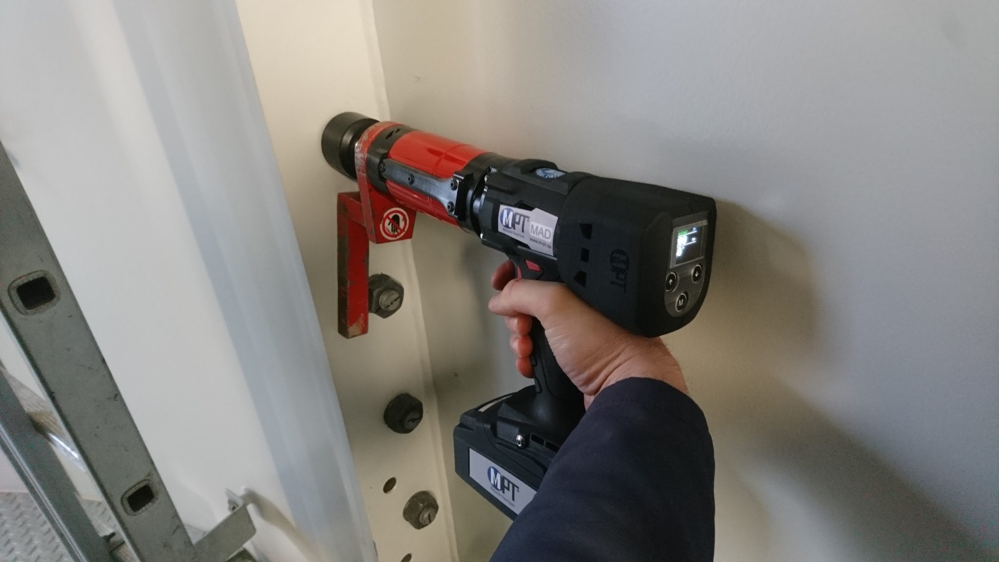 Our battery-powered torque wrench MAD-S has a built-in torque sensor at the gearbox output and shuts-off precisely by this sensor. Thereby the tool is insensitive to environmental influences, such as friction, temperature or joint hardness. A very important safety feature is the shutdown according to torque / angle, also in counter-clockwise rotation. With this torque wrench one can tighten bolts by category A according to VDI/VDE 2862-2. Due to the brushless electric motor, the lifetime of the tool is increased. Our MAD-S is especially suitable for maintenance work. With an integrated, highly sensitive torque check function bolted connections can be checked, without actually tightening the bolt further. On custom demand the tool can be programmed with individual parameters. Each torque wrench comes fully calibrated with documentation system, torque check function, bluetooth adaptor, reaction arm and 2x retaining ring, 2x battery, quick battery charger and manual in a storage case.