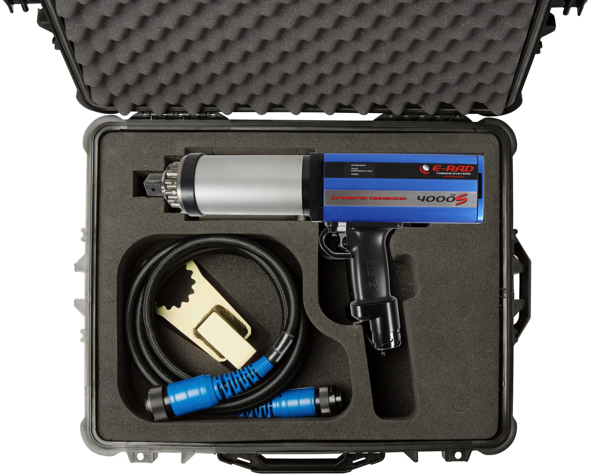 The torque wrench series E-RAD BLU-S is a sensor-controlled bolting tool. Therefore this torque wrench shuts-off with the highest possible accuracy. Every controller can be used in combination with multiple models wrenches. The built in bluetooth unit allows the torque wrench to communicate with the Smart Socket directly. Each torque wrench comes with a reaction arm and 2x retaining ring, Documentation System, calibration certificate and user manual in a storage case.